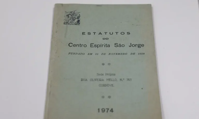 Um livreto em papel verde, datado de 1974 e levemente amarelado pelo tempo, reúne os estatutos do Centro Espírita São Jorge, localizado