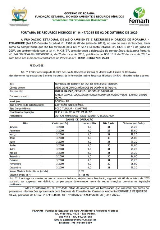 Portaria de Recursos Hídricos Nº. 0147/2025 de 2 de outubro de 2025