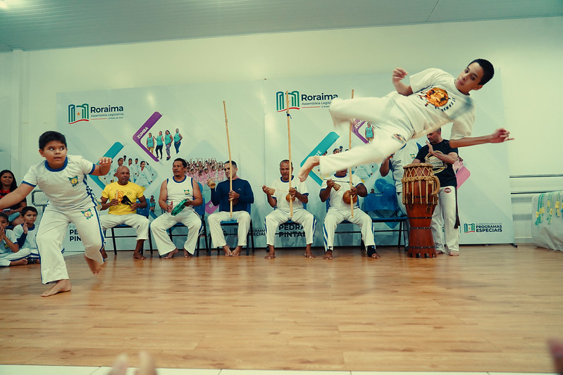 O polo do Pedra Pintada, do Centro de Convivência da Juventude (CCJuv) da Assembleia Legislativa de Roraima (ALERR), celebrou a troca de cordas de 35 alunos da capoeira, assim como o batizado de novos integrantes. A cerimônia ocorreu na noite desse sábado (29).