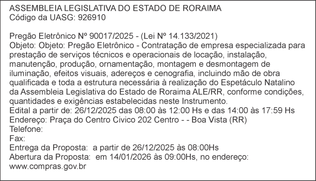 ASSEMBLEIA LEGISLATIVA DO ESTADO DE RORAIMA – Pregão Eletrônico Nº 90017/2025