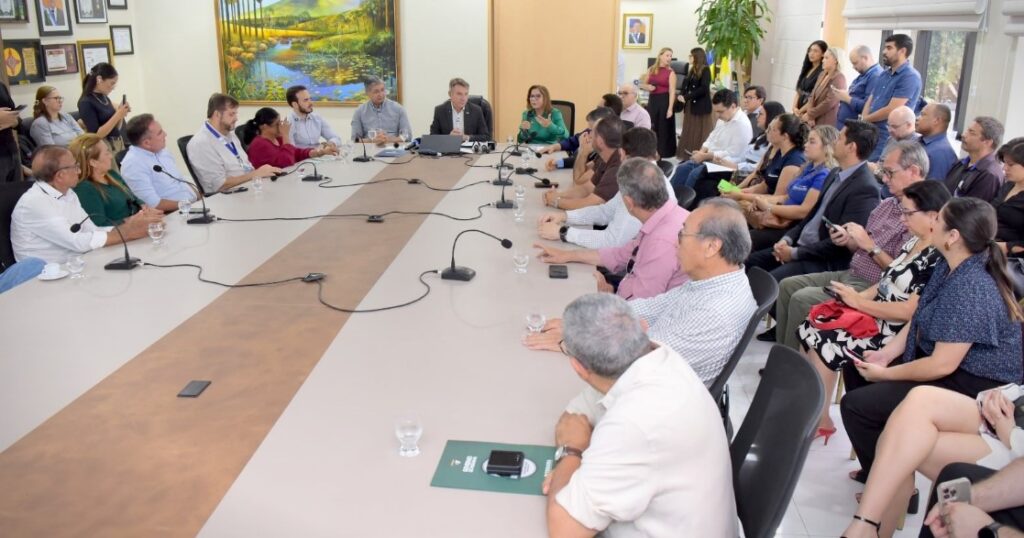 A sanção ocorreu durante coletiva de imprensa no Palácio Senador Hélio Campos, com a presença do vice-governador Edilson Damião, dos deputados estaduais Aurelina Medeiros e Lucas Souza, além de representantes do setor produtivo e da Fier (Federação das Indústrias do Estado de Roraima).