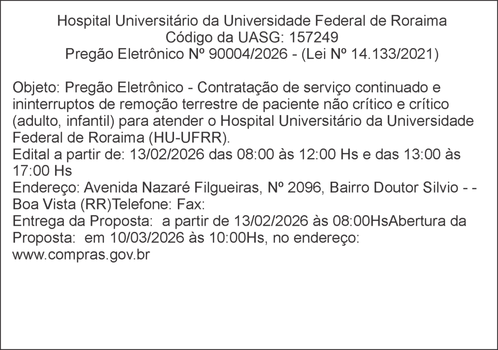Hospital Universitário da Universidade Federal de Roraima – Pregão Eletrônico Nº 90004/2026