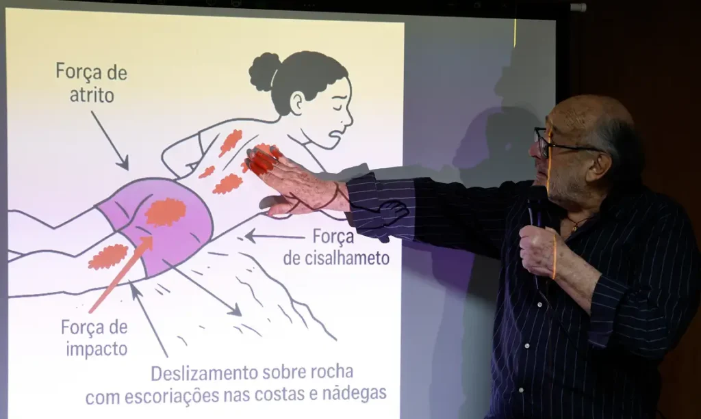 “Foi uma autópsia totalmente contaminada no sentido técnico. Os órgãos já estão praticamente sem sangue, pálidos, e naturalmente se fez necessário um processo de embalsamamento com formol. Tem um prejuízo, mas o formol possibilitou conservar as lesões externas e os órgãos internos”, disse o perito Reginaldo Franklin.